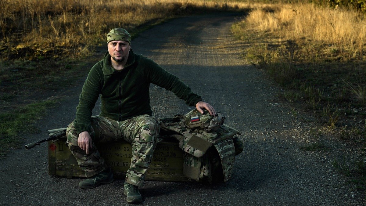 Апти Алаудинов в Луганской области, Украина, 20 февраля 2024 года. Фото: Алексей Майшев / Sputnik / Imago Images / Scanpix / LETA.Один из узнаваемых символов нынешнего этапа «СВО» — гибридный российско-чеченский православно-мусульманский флаг спецназа «Ахмат», на фоне которого с мая прошлого года записывает свои видео Герой России, командир «Ахмата» и замначальника главного управления по военно-политической работе Минобороны РФ генерал-лейтенант Апти Алаудинов. Левая половина знамени — флаг Чеченской Республики с мусульманским полумесяцем, правая — флаг РФ с христианским крестом, а соединяет их, словно «духовная скрепа», образ Ахмата Кадырова посередине.
